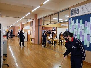 本校の清掃は「黙働=だまって」行っています。役割を分担し、短い時間で効率よく掃除しています。きれいな環境は気持ちがいいです。