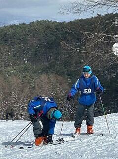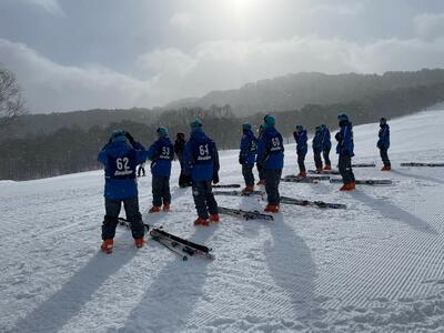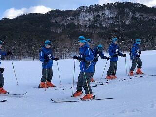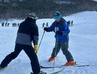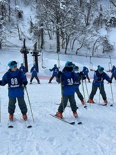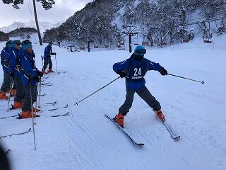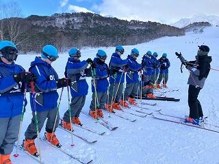 スキー実習の様子です。インストラクターさんが、優しく、根気強く教えてくださっています。スキーが初めての生徒もがんばっています。