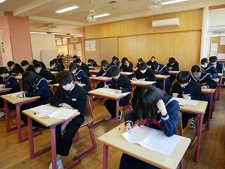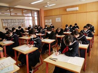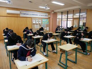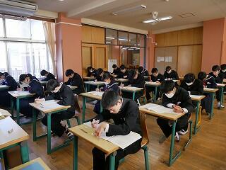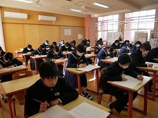 3年生、今日は実力テスト。同時に、今日から私立高校の推薦試験が始まりました。今朝も本校前を通り、多くの受験生が明秀日立高へ向かっていきました。いよいよ受験シーズン到来。これから3月まで続く進路決定に向けて、自分の力を十分に発揮してほしいです。
