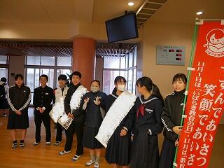 生徒会役員によるあいさつ運動で、今週もスタートしました。今年の登校も、残り1週間ほどになりました。寒さが増す中、今週もがんばりましょう。