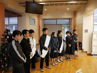 今朝も寒い朝でした。生徒会役員による、あいさつ運動に新しい仲間(次期役員)が加わり、さらに元気なあいさつの声が響いています。長かった2学期もあと2日。健康面に気を付けて、よい年末年始を過ごしてほしいです。