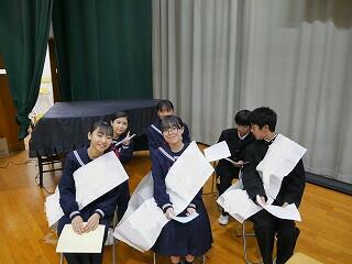 全校集会で、新人戦以降(主に10月以降)に行われた文化・芸術・スポーツ等の表彰状の伝達を行いました。たくさんの表彰があり、多くの生徒の頑張りを全生徒の前で披露することができました。