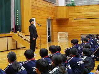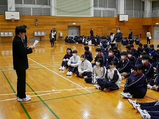 今日の午後は、全学年で、明日の終業式を前に学年集会を行いました。内容は、冬休みの生活や学習、宿題についてです。3年生は学年クラスマッチの表彰式も行っていました。先生方の助言をよく聴いて、よい年末年始にしてほしいです。