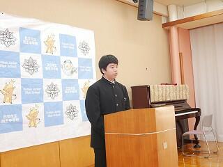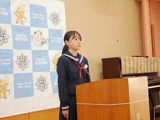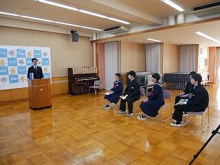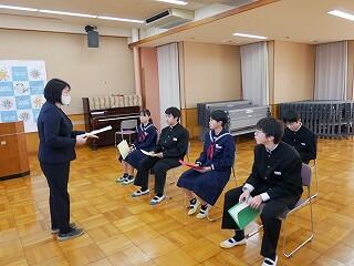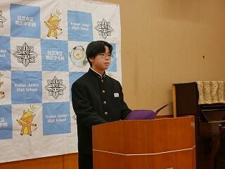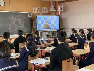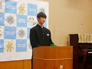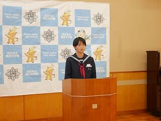 本日、2学期の終業式が行われました。体育館用ストーブが修理中のため、生徒たちの体調を考慮してリモートで行いました。各学年の代表生徒からは、2学期の反省と来年への抱負が力強く語られました。画面を通して参加している生徒も真剣な表情で2学期を振り返っていました。冬休みは、さまざまな事故に注意し、安全で元気に過ごしてほしいです。