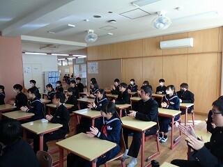 3学期の始業式も、念のため、リモートで行いました。年末年始にかけて、全国各地でインフルエンザが猛威を振るっているニュース報道がありました。3年生は、すぐに私立高校入試が始まります。体調管理に十分注意して、元気に、3学期を送っていきたいです。
