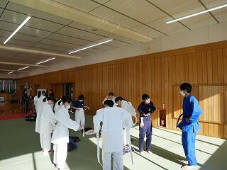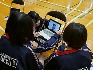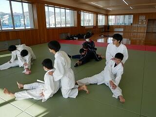 2年生の体育は、クラスごとに柔道とダンスを交互に学習します。今日は1組と2組が武道場と体育館に分かれていました。道場は寒くてつらそうですが、それでも楽しんで取り組んでいました。ダンスでは、グループごとに選曲や振り付けをタブレットを使って探していました。