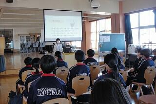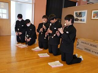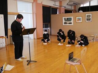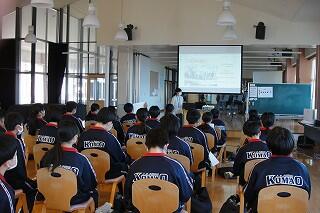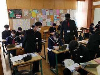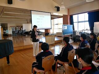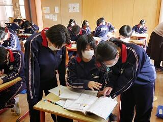 1年生の音楽は栄養教諭とのコラボ授業です。なぜ栄養教諭かというと、今日の授業のテーマは、日本の伝統芸能「民謡」だったからです。民謡は、その土地の生活に深く根ざして生まれてきました。民謡は、その土地に暮らす人々の食や生活習慣、農耕や狩猟などに大きく関わっていることを、栄養教諭から教わった生徒たちは、民謡という音楽を、より身近に感じたようでした。いい授業でした。