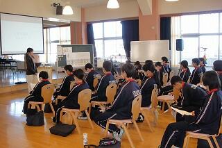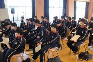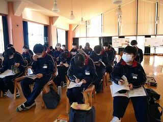 1年生の総合は、職業についての学習(キャリア教育)です。今日は全学級同時に「職業選択の自由」について考えました。1年生はこれから、各自が興味のある職業調べ、2年生での職場体験学習へとつながっていきます。
