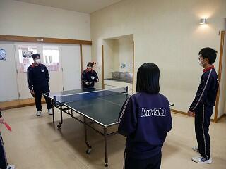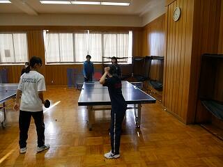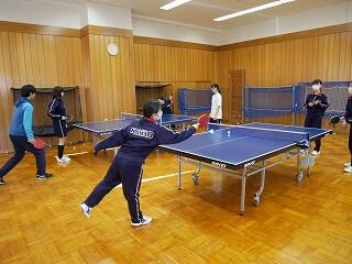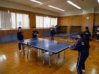 3年生の体育は卓球でみんな笑顔になっていました。自分のレベルに合わせてシングルスやダブルスを選び、先生も交えて、交互に対戦していました。中には卓球部同士の対戦もあり、高レベルの白熱している試合もありました。