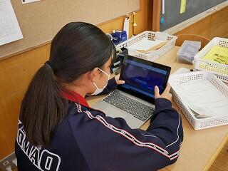 3年生の音楽は、リコーダーの技能テストを行っていました。一人ずつタブレットに録画して先生に提出するようです。さすが3年生。協力し合って、手際よく録画作業を行っていました。