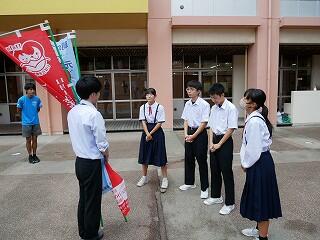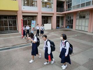 週のスタートは、生徒会本部役員による「あいさつ運動」で始まります。土曜日まで新人戦で試合をしていた生徒たちも元気よく登校。今週もがんばりましょう!