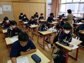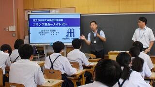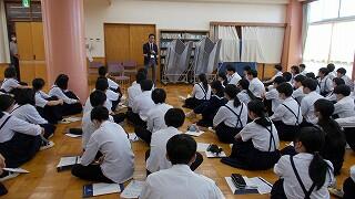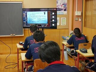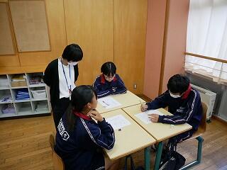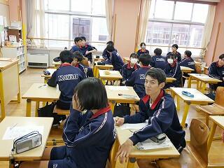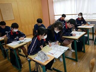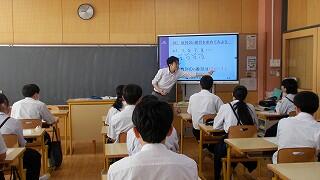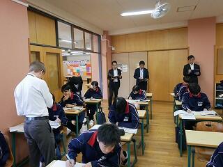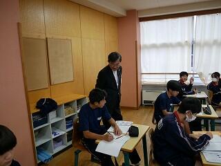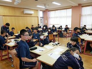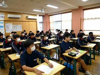1・2年生が新人戦にいっている間、3年生は進路について考える機会をいただきました。隣の明秀日立高校の先生方がいらしてくださり、授業をしてくださったのです。高校の先生が、国語や数学、社会科の学習について教えてくださり、最後には教頭先生や進路部長の先生から、進路選択や受験についてのアドバイスをいただきました。あいさつ運動や部活動等で日頃から交流していただいている明秀日立高校。事前にとっておいた生徒たちからの質問にも答えてくださいました。3年生にとっては、充実の3時間授業となりました。明秀日立高校の先生方、ありがとうございました。