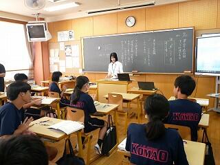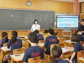 1年生の実習生も今日が最終日。家庭科の研究授業に臨みました。加工食品や消費期限、添加物など、実物を用いて詳しく説明していました。フレッシュな先生の頑張り。生徒は、今日の授業をずっと覚えていると思います。