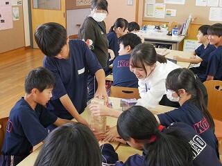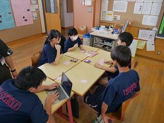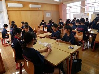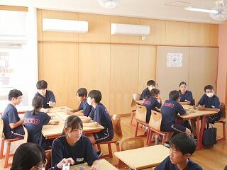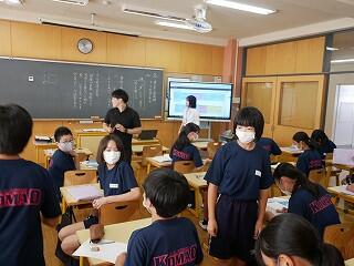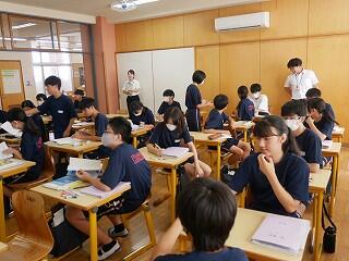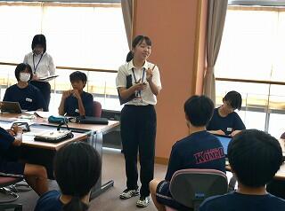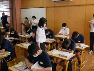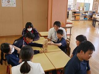 1年生は学級活動でレクを楽しんでいました。というのも、今日が最終日の教育実習生との交流を兼ねているからです。実習生と様々なゲームで大盛り上がり。思い出を作っていました。