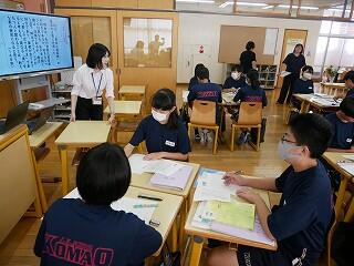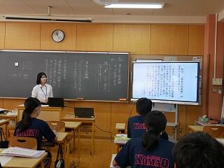 2年生の実習生は、今日が最終日。実習の集大成である国語の研究授業を行いました。授業中、ゲームを入れたり、話合いを入れたり、書くことに取り組んだり、学びの多い授業でした。立派な態度で堂々と授業を展開していました。