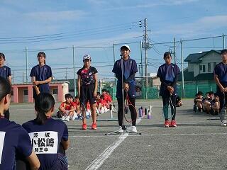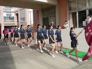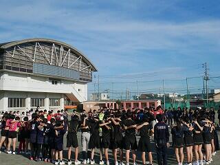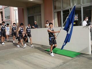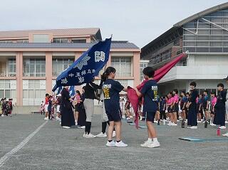 3年生から1・2年生への部旗引き継ぎ式と新人戦に向けての壮行会が行われました。3年生は今日で正式に部活動の引退。1・2年生の新人戦にエールを送りました。3年生の温かい励ましと、1・2年生の力強い誓いの言葉が述べられ、最後は全員で輪になって校歌を歌いました。確かにバトンは引き継がれました。3年生ありがとう。お疲れさま。1・2年生の頑張りに期待しています。
