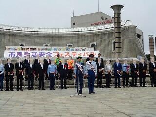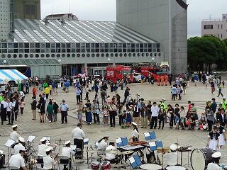 21日(土)日立シビックセンター新都市広場で、市民生活安全フェスティバルが行われました。本校生徒が、一日警察署長・消防署長に任命され、市民安全宣言を、式典の中で宣言しました。2人とも制服がよく似合っています。