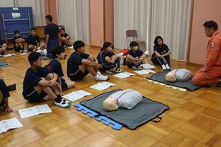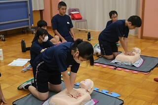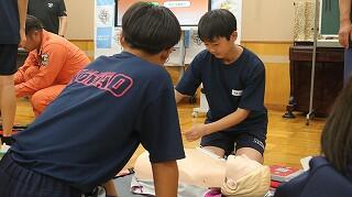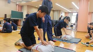 1年生の普通救命講習は、3組で最後となりました。3組の生徒も、真剣に話を聴き、全員が心肺蘇生法とAEDの使い方を体験しました。本校では毎年、1年生が受講しているため、これで1~3年生までの全校生徒が受けたことになります。災害は、いつ、どこで起きるか分かりません。生徒一人一人が体験したことは、必ず役に立ちます。