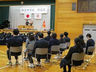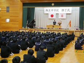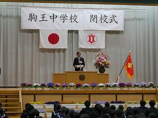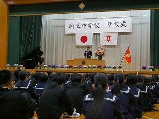 4月から、本校は平沢中学校との統合を迎えます。今日は、修了式の後、閉校式を行いました。本校の元校長先生でもあった、教育長様より激励の言葉をいただきました。生徒たちもみんな真剣な表情で聴いていました。令和7年度からの、さらにパワーアップした、駒王中ネクストステージにご期待ください。市教育委員会の皆様、関係者の皆様、ありがとうございました。