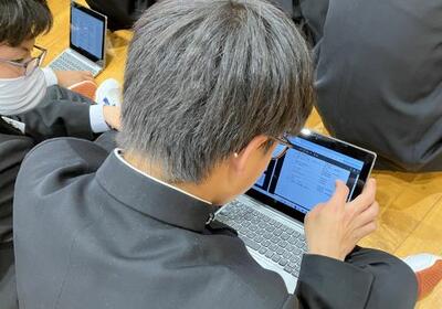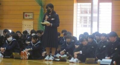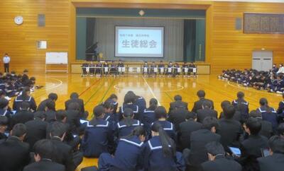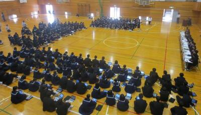 生徒会役員や各委員会委員長を中心に進められ、入学したばかりの1年生もタブレットを使いながら、非常に真剣な表上で聴いていました。