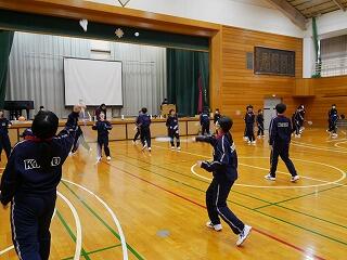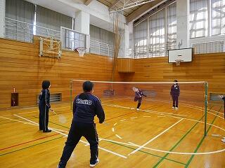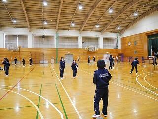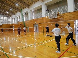 体育館から楽しげな声が聞こえてきました。のぞいてみると、3年生が体育でバドミントンをやっていました。ローテーションしながら試合をどんどん行っていて、適度な運動と大きな声を出すことで、いいリフレッシュにもなっているようでした。