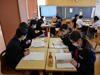 3年生の道徳は、伝統的な祭りを次の世代へ受け継ぐという実話から思いを深めるという内容でした。卒業を前にした3年生たちは、主人公を今の自分たちと重ね合わせているようでした。