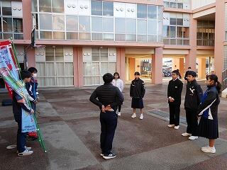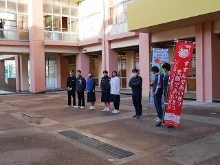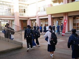 今週も、1・2年生中心の新しい生徒会本部役員による朝のあいさつ運動から始まりました。昨日の嵐が嘘のように、太陽の光が降り注ぐ気持ちのいいスタートです。