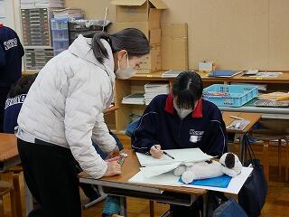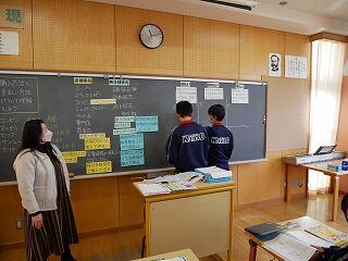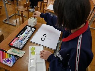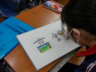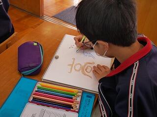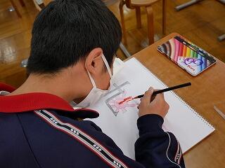1年生の美術は、日立市内の町名をイメージしたデザイン画に取り組んでいました。漢字からイメージする色やデザインを工夫して、個性あふれる作品を作っています。みんな真剣な表情です。