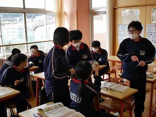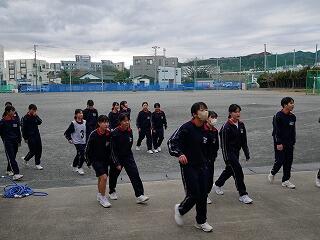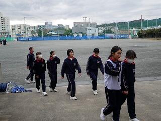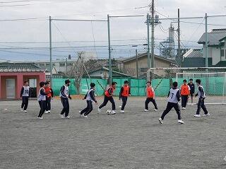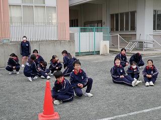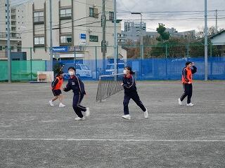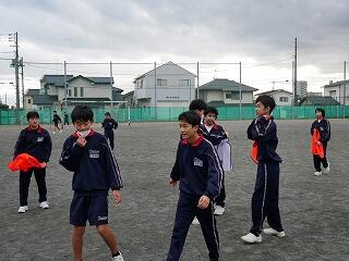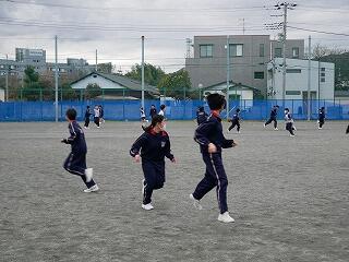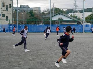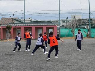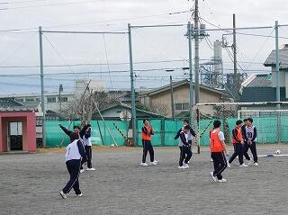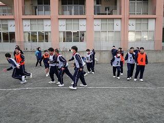 1年生は学年レクの鬼ごっこでグランドを縦横無尽に走り回っていました。寒い中ですが、相当の運動量があり半そでや短パンになる生徒も。ハアハア言いながら思いっきり楽しんでいました。