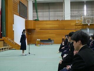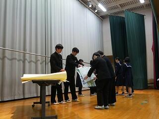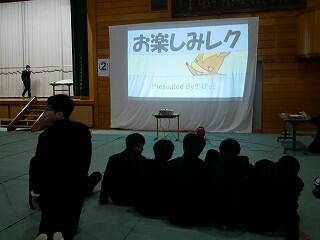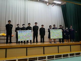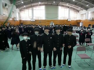感動的な「3年生を送る会」でした。1・2年生の生徒会本部を中心とした企画は、どれもすばらしく、楽しいクイズや心温まるメッセージ、懐かしい写真や動画などで、おおいに盛り上がりました。3年生同士はもちろん、1・2年生も3年生との絆を深めました。3年生を讃え、卒業をお祝いする気持ちで、駒王中がまた一つ成長したような送る会でした。