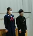 始業式では、各学年代表生徒の堂々とした新年の抱負発表や、校歌伴奏者(3年生から2年生に引き継がれました)の紹介等がありました。